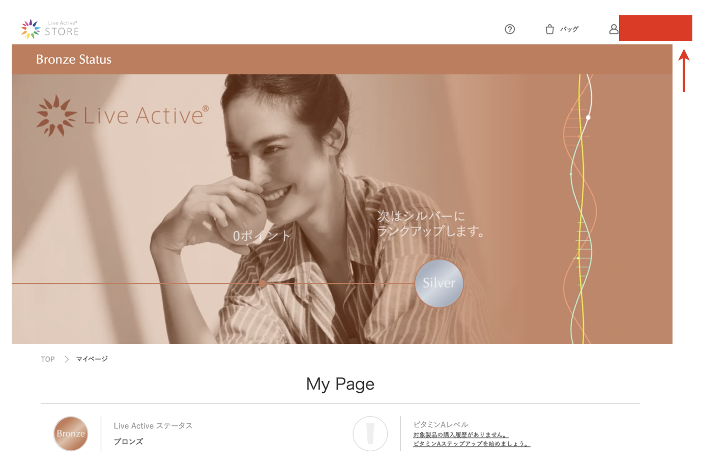 1、エンビロンの公式サイト【Live Active】にアクセスし、会員登録をクリック