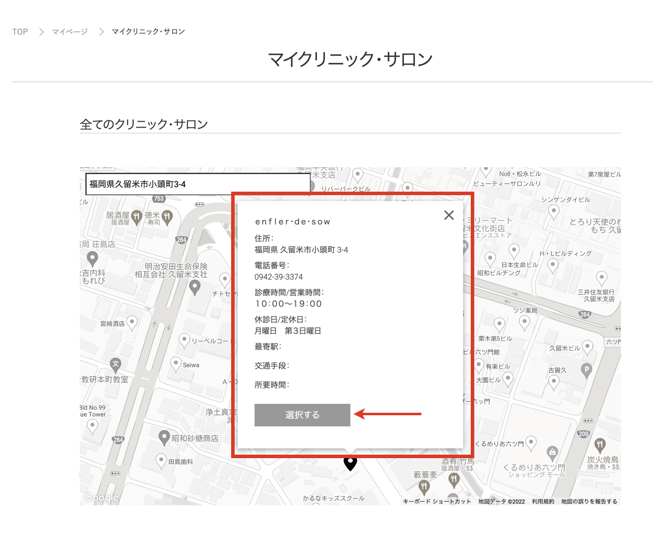13、マイページに戻っていただき、マイクリニックサロンに「enfler・de・sow」が表示されているかご確認下さい。