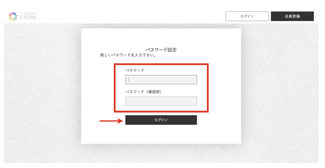 5、ご希望のパスワードをお決めいただき、入力後ログインをクリック。