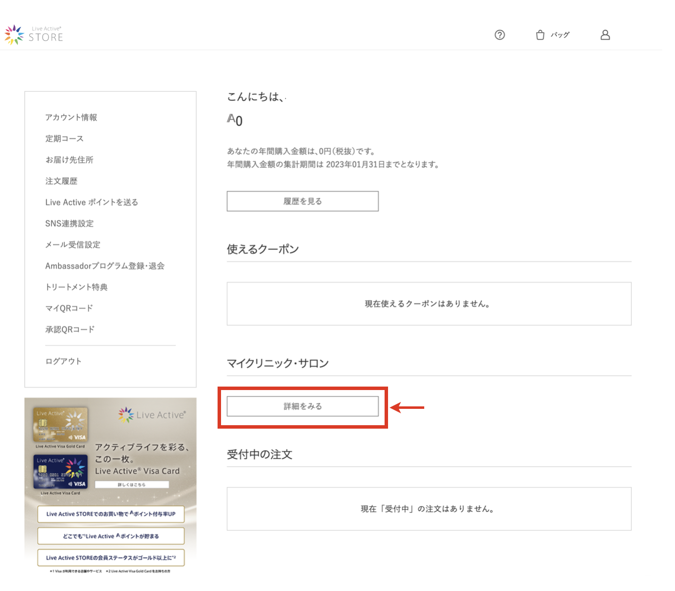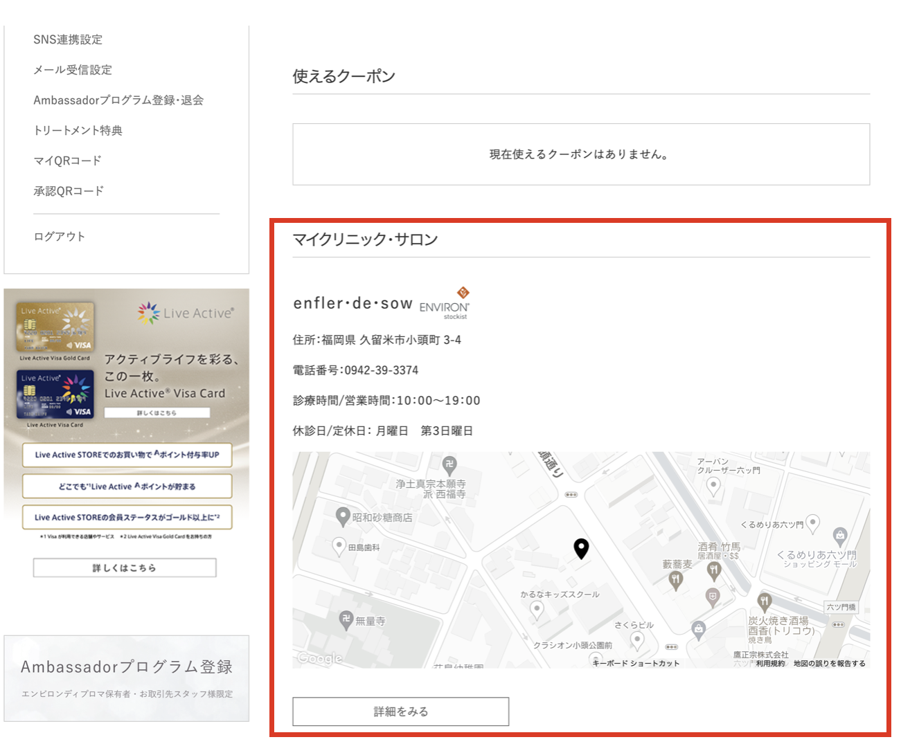 マイページのマイクリニック・サロンの「詳細をみる」をクリック