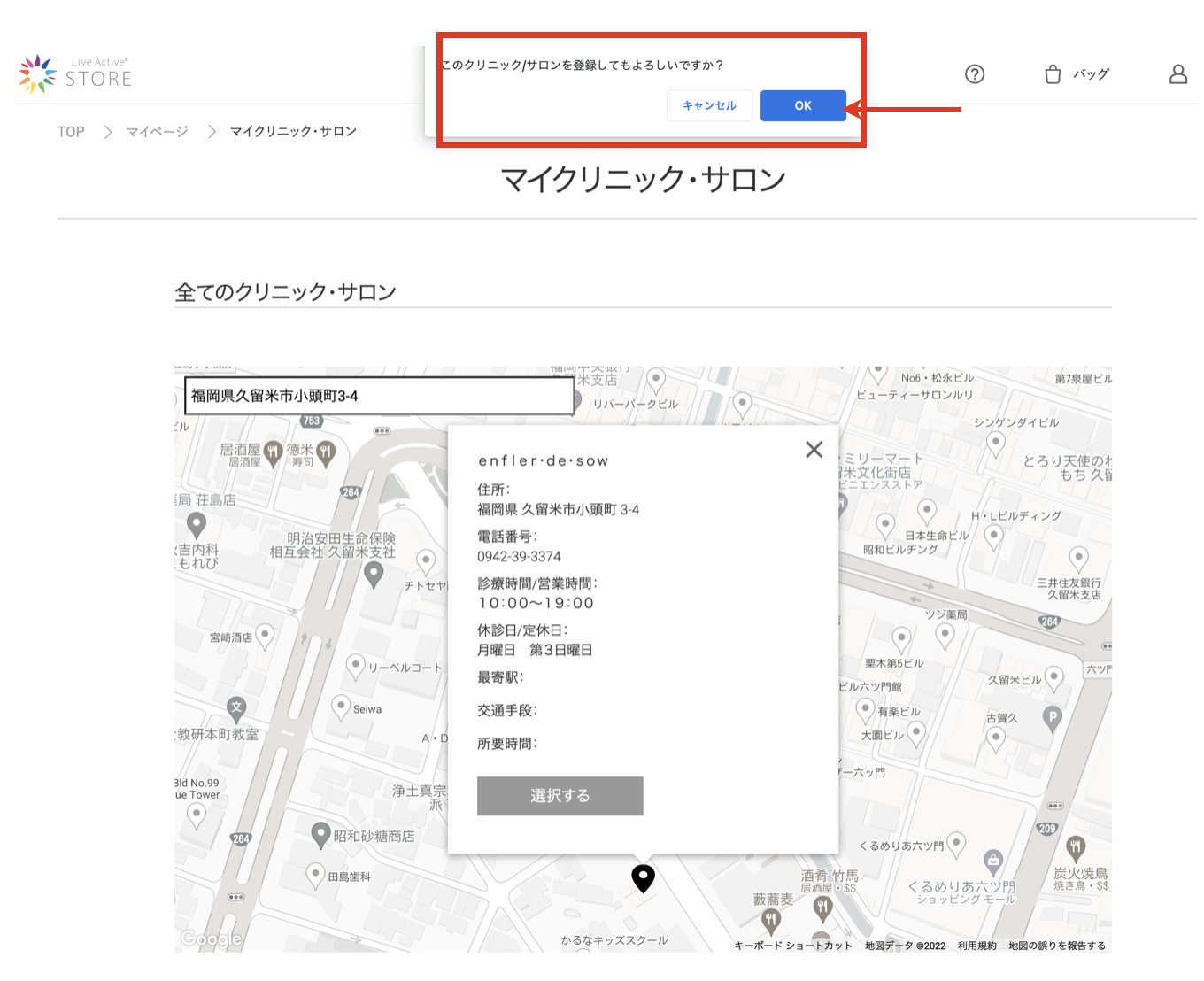 10、画面のように当店が出てきましたら、「選択する」をクリックしてください。