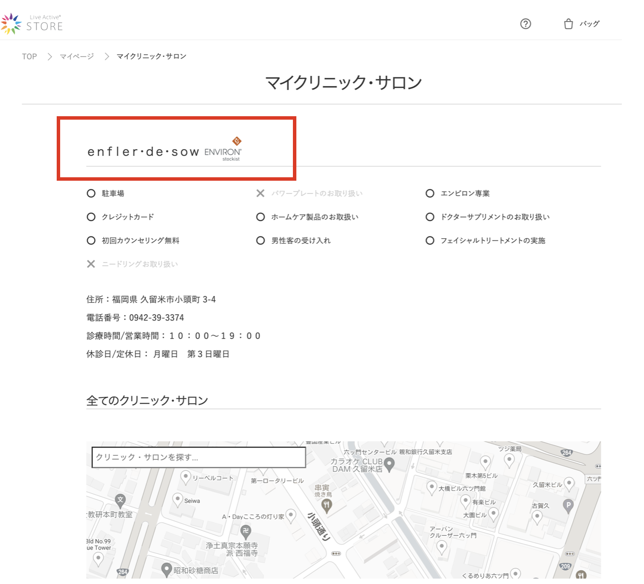 13、マイページに戻っていただき、マイクリニックサロンに「enfler・de・sow」が表示されているかご確認下さい。